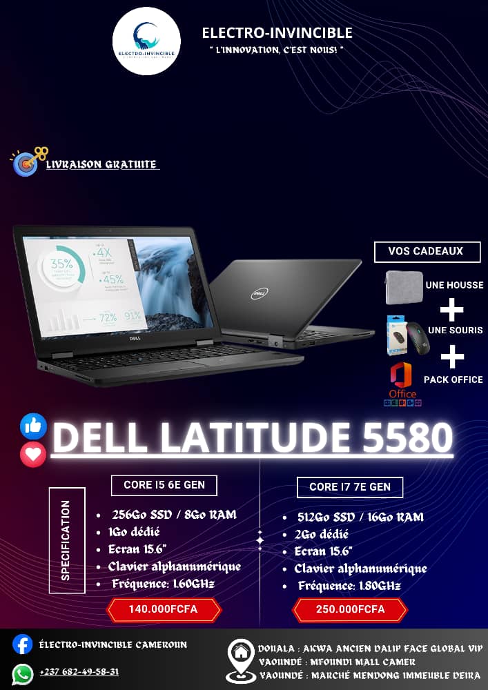 Le Dell Latitude 5580 Core i7 7ᵉ génération est un ordinateur portable professionnel puissant et polyvalent, conçu pour :